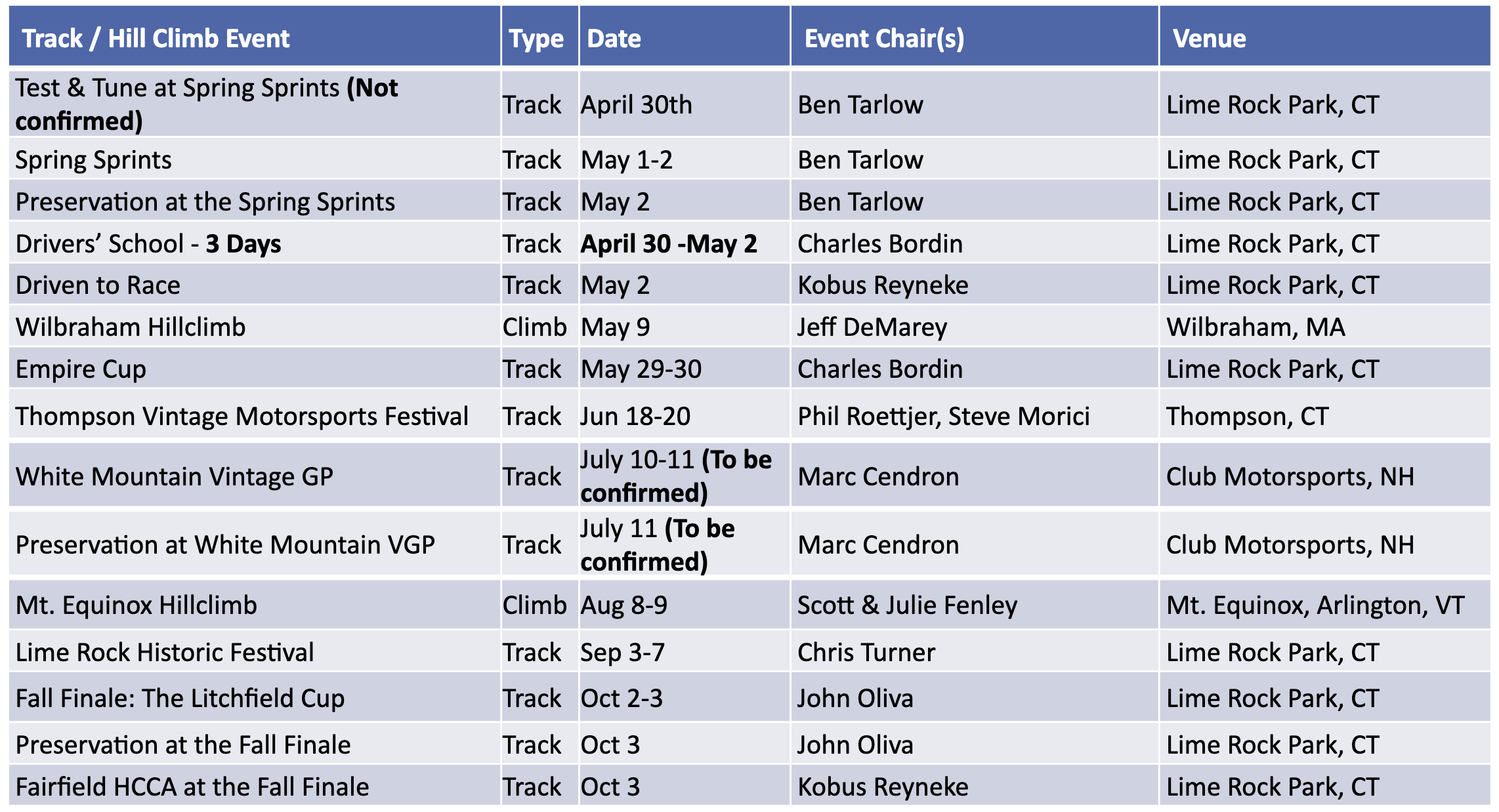 Our 2026 season is coming together nicely with almost all competition dates firmly established. Tours and socials will be finalized as we approach the new year. Go ahead and mark your calendars, but consider that everything listed is subject to change.